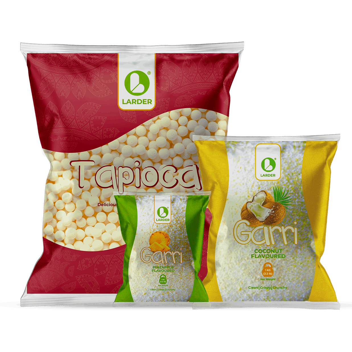 At Larder, we take pride in celebrating the rich heritage of Nigerian garri while introducing fresh, delightful flavors that enhance your everyday experience. Our coconut and pineapple-flavored garri and tapioca are crafted to bring joy and a touch of excitement to your meals, making every moment with Larder a special one.